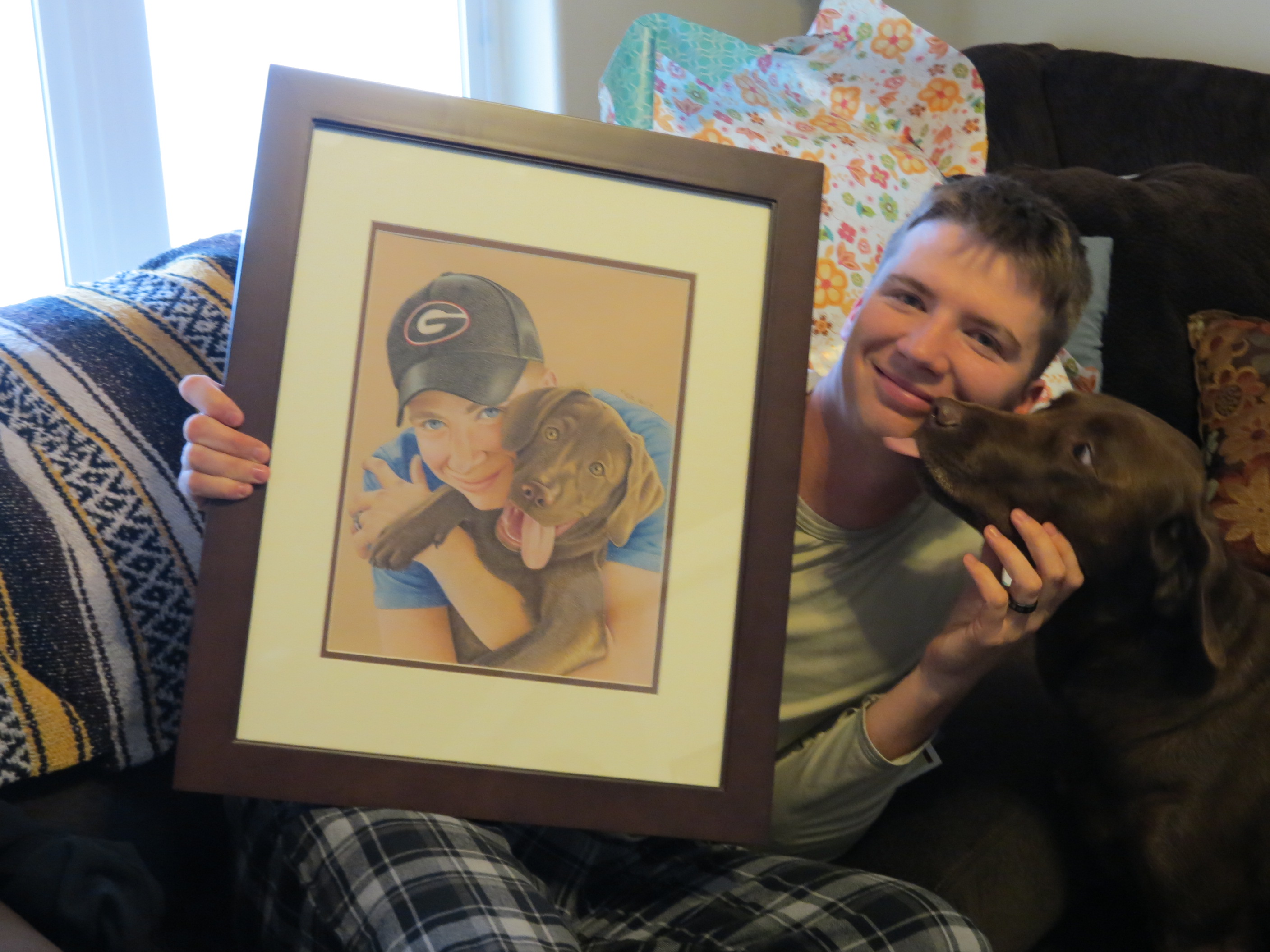 Posted in Drawings, People, Pets Dennis and Leia Image• Posted on January 4, 2014January 4, 2014 by Rita F This was a very special project for me…a color portrait for my husband on his birthday! This drawing is done in colored pencil and is 11×14. Took me 15 hours to complete. Needless to say, he loved it and so did our dog Leia! Share this: Click to email a link to a friend (Opens in new window) Email TweetLike Loading... Author: Rita F Professional portrait artist since 2003. Currently residing in VA. Email: rita.rod.frazee@gmail.com View All Posts